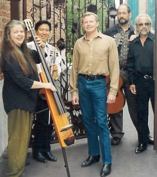 Mary Burnley plays the Clevinger upright bass and the Novax five-string bass guitar